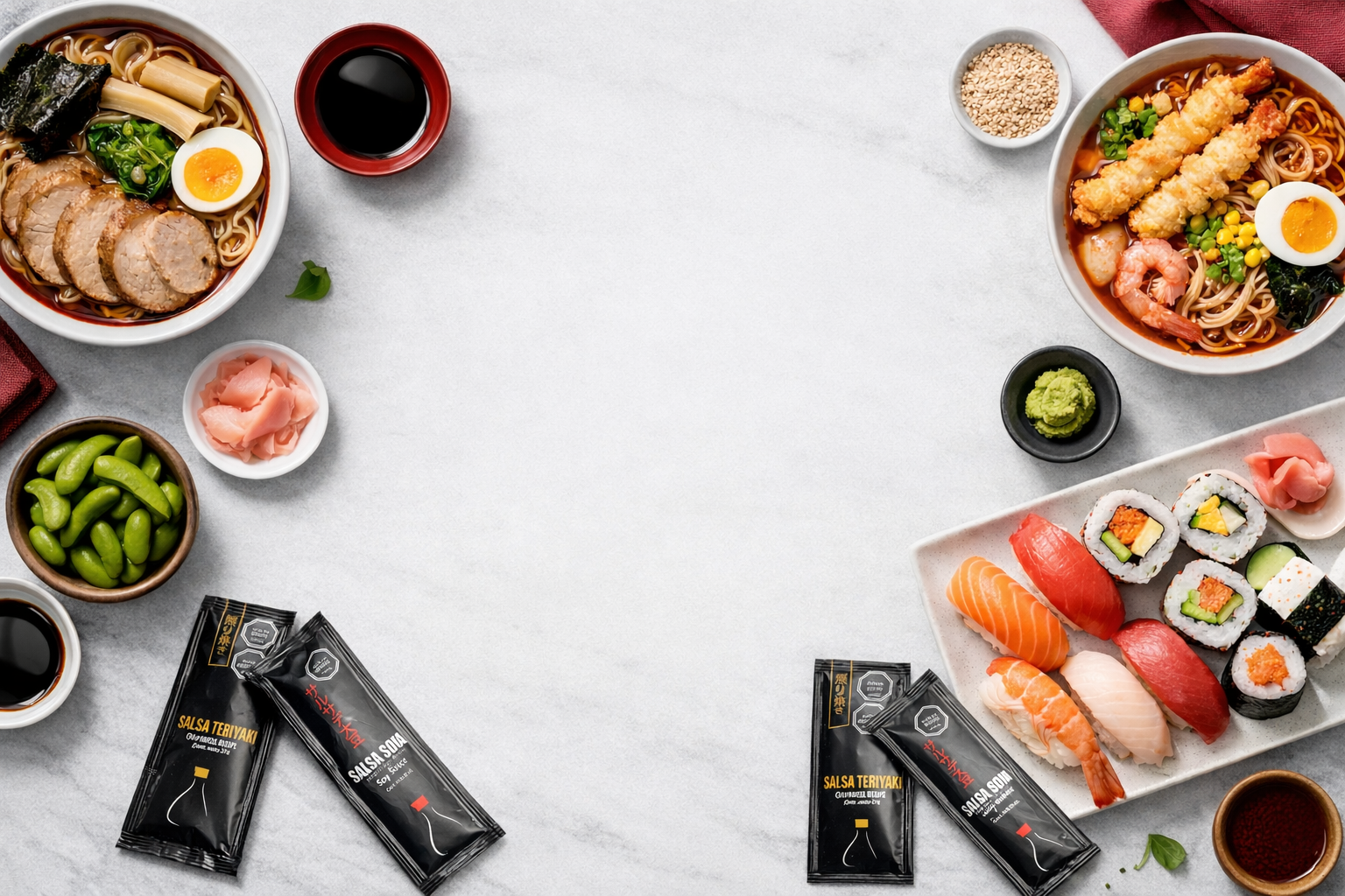 Sachets de Soya, Teriyaki, Unagui, Bolsas Kraft y Más